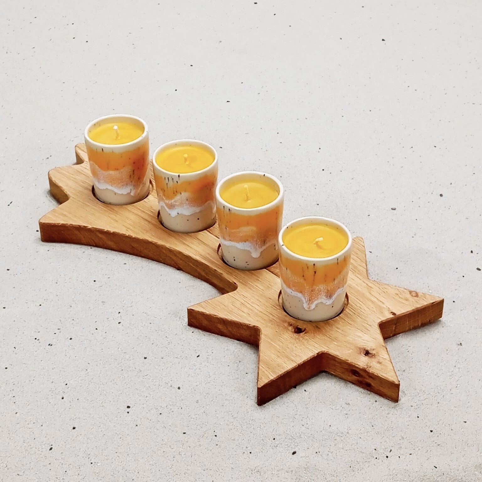 SET Kerzenhalter mit 4 Bienenwachskerzen im gelben Keramikbecher